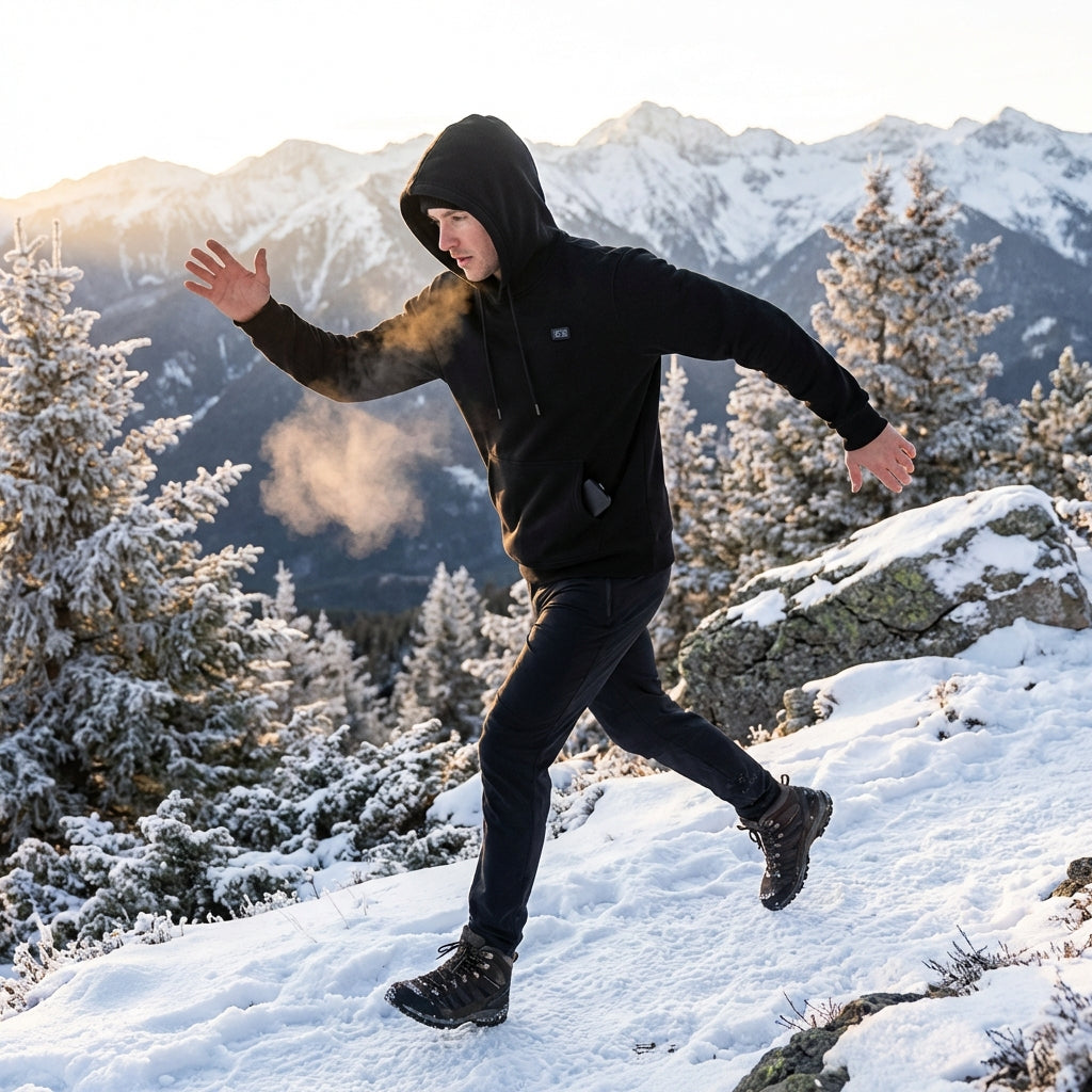 Forget waiting 10-15 minutes to feel warm in traditional hoodies. Our Graphene heating elements reach optimal temperature in under 3 minutes, so you step outside and feel immediate comfort. Perfect for morning dog walks, spontaneous hikes, or anyone who refuses to let cold weather interrupt their day. While others are still shivering and waiting for their body heat to build up in bulky layers, you're already warm and moving.